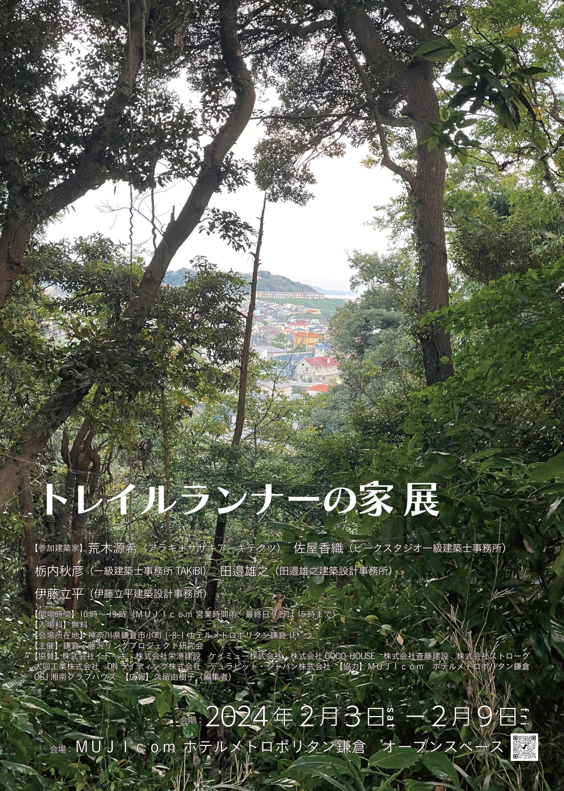 2018年の7人の若手建築家によるサーファーの家展に続く第2弾として、鎌倉にゆかりのある5人の建築家が鎌倉エリアの具体的な敷地を対象に「トレイルランナーの家」を提案する展覧会です。